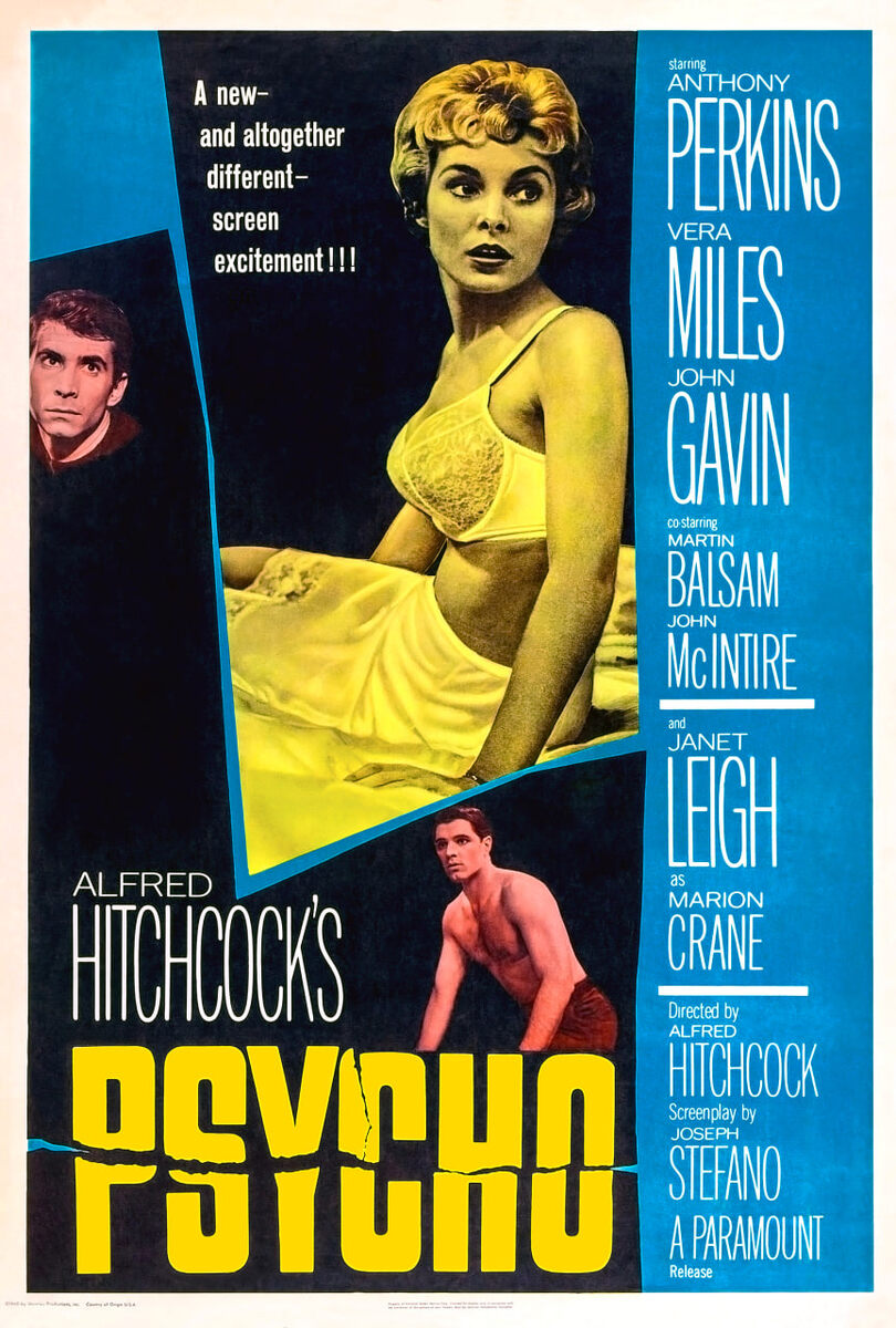 Кино о том, как снималось кино может быть не менее увлекательным, чем фильм, послуживший источником вдохновения. Речь идёт об интересном фильме Саши Джерваси «Хичкок» (2012). В нашем случае это не просто классическая картина «Психо» (1960) Альфреда Хичкока, история работы над этой картиной, но и попытка проникновения во внутренний мир выдающегося режиссёра, его страхов, сомнений, ревности, разочарований. «Весь Голливуд меня ненавидит. Я приношу им миллионы долларов, а каждый год сижу на этих ужасных ужинах с наградами, в надежде, что кто-то скажет: «Ты хорош». Им доставляет садистское удовольствие лишать меня этого единственного момента»- говорит Хичкок в фильме. Картина снята так, что затягивает вас, словно водоворотом, вы забываете окружающий мир. Великолепные актёрские работы Энтони Хопкинса (Хичкок) и Хелен Миррен (жена Хичкока – Альма Ревиль). Но и другие актёры замечательны – в «Хичкоке» нет плохих работ. Постер фильма Альфреда Хичкока «Психо» (1960) «Психо» - третий фильм в чер