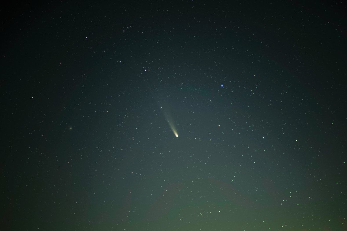 Комета C/2025 Lemmon в моём объективе сегодня вечером... Наконец-то. 3 недели я ждал момента и звёздного неба. Я уже столько раз сказал, что ничего не получится и ну его... Но в очередной раз надеялся... Через неделю комета уйдёт в южное полушарие и больше мы её не увидим (ну разве что через 1200 лет примерно), но я увидел! Гештальт закрыт! Счастлив, как ребёнок!