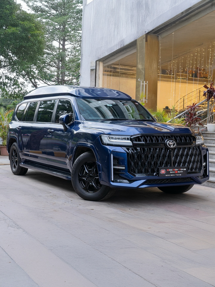 Но если поставить рядом обычную версию — разница очевидна. У Limousine пропорции изменились: задняя дверь длиннее, задний свес массивнее. На дороге он выглядит как Land Cruiser, решивший стать Maybach, но без показного пафоса.