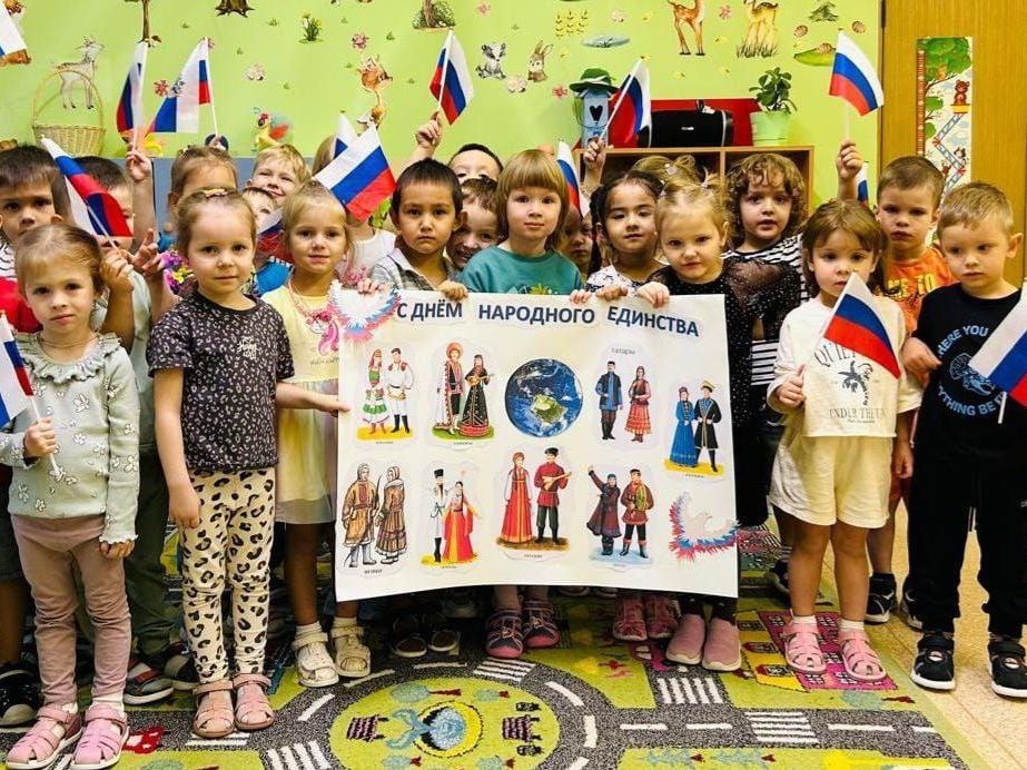 Славься, Россия, единой страной! 🇷🇺В наших дошкольных отделениях прошел тематический день, посвященный Дню народного единства. Этот праздник, символизирующий сплоченность и многообразие нашего народа, стал отличным поводом для воспитания у детей чувства уважения к истории и культуре России. ⚔️С самого утра в группах царила атмосфера радостного предвкушения. Воспитатели подготовили увлекательные занятия, рассказывающие об истории праздника, его значении и символах. Дети узнали о событиях 1612 года, когда народное ополчение под предводительством Кузьмы Минина и Дмитрия Пожарского освободило Москву от иноземных захватчиков. 🤝В младших группах малыши с удовольствием рассматривали красочные иллюстрации, изображающие народные костюмы, флаги и гербы разных регионов России. Они играли в простые игры, направленные на знакомство с понятиями дружбы, единства и взаимопомощи. 🎨Дети постарше приняли участие в более интересных активностях. Они рисовали рисунки на тему "Россия – наш общий дом"
