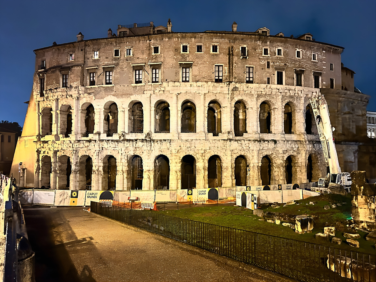 А это прадед Колизея — построенный почти за век до него, театр Марцелла. Это первый каменный театр в Риме — задуманный ещё Юлием Цезарем, завершённый Октавианом Августом и названный в честь Марцелла, рано умершего племянника первого римского императора. Когда-то здесь собиралось до двадцати тысяч зрителей, чтобы смотреть комедии и драмы, а вовсе не гладиаторские бои. Здесь же раздавали благотворительную помощь от императора. Позже, в Средние века, руины театра превратились в крепость, а его своды заняли торговцы и ремесленники. Затем, прямо в стенах театра вырос дворец. Получилось редкое зрелище: античный театр, на котором буквально стоит ренессансный палаццо. Сегодня в верхней части всё ещё живут люди. Архитекторы отмечают, что буквально каждый архитектурный элемент театра Марцелла перешел в Колизей. Колизей действительно вырос из этого здания: тот же камень, те же арки, та же логика. Только масштаб другой. Антон Райхштат.