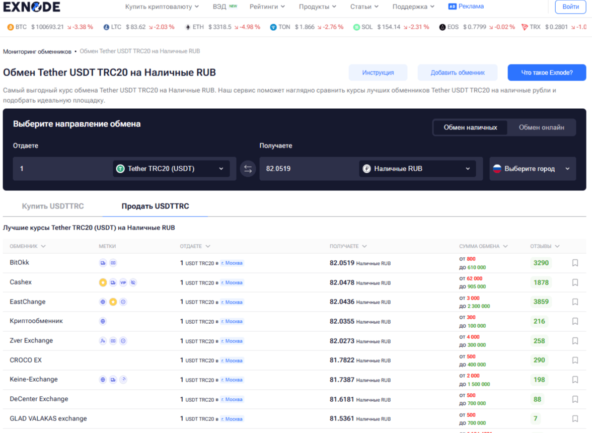 Для того чтобы подобрать подходящую площадку, стоит воспользоваться мониторингом Exnode — удобным сервисом, который помогает найти проверенные криптообменники в России офлайн с реальными офисами, отзывами и подтверждённой репутацией. С его помощью можно быстро определить безопасные варианты и выбрать именно тот офлайн обменник, которому действительно можно доверять.
