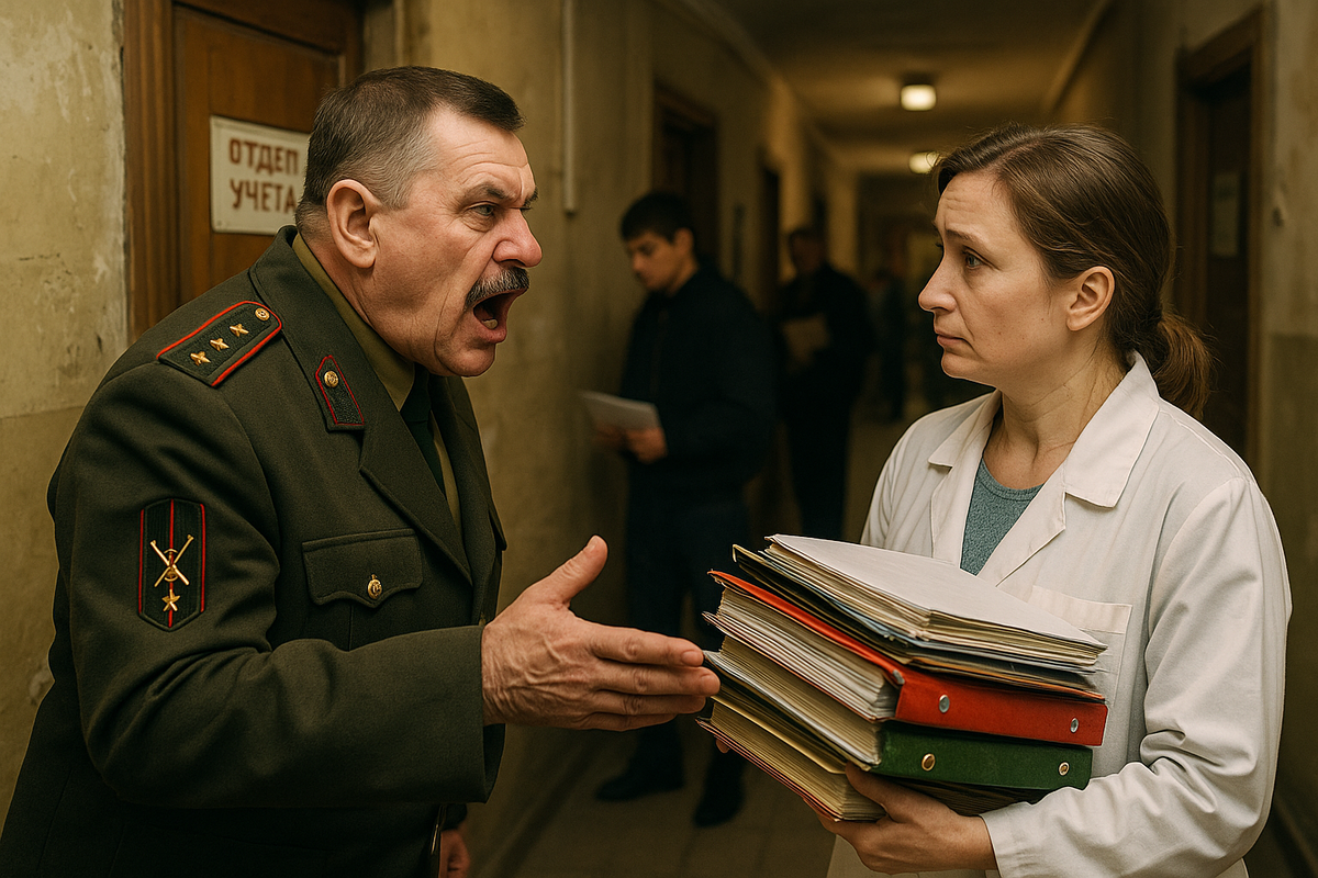 У окна — наш военком, на повышенных тонах спорит с женщиной-сотрудницей. Сначала я даже внимания не обратил: ну ругаются, рабочие моменты, где сейчас без нервов. Но всё стало интереснее, когда женщина вдруг сказала на весь коридор: