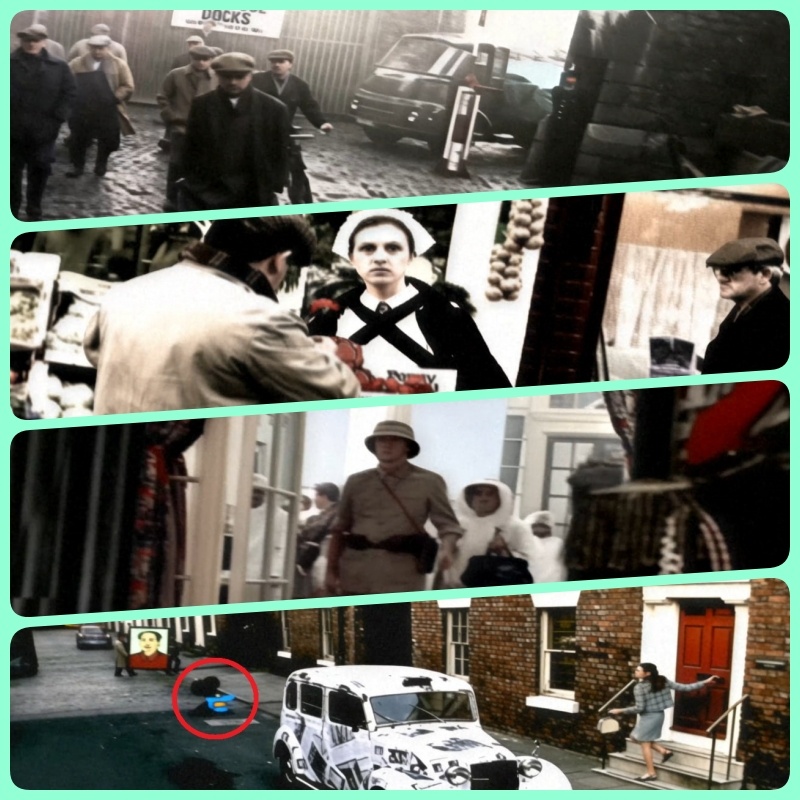 Вместо этого вы видите размытый кадр, на котором он прислоняется к фургону возле Cavern (см. реальное фото вверху) (2:01:17).