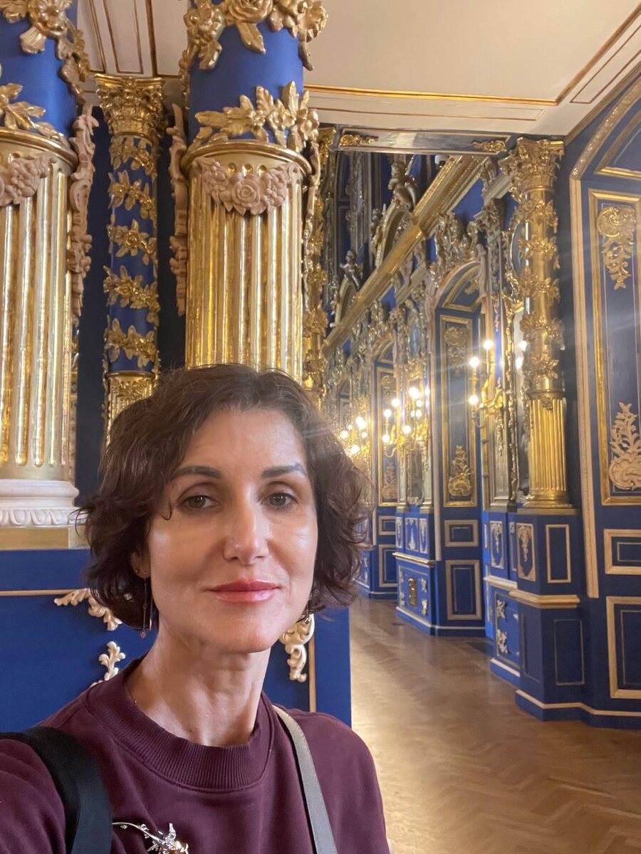 Колонны вот такие, золотые с каннелюрами или синие, увитые золотой розовой лозой. Растение нами не виданное, но в райском саду оно точно есть!