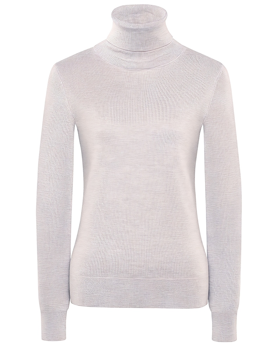 Обратите внимание на цвет. Телесные, серые, чёрные оттенки позволяют сочетать этот уровень с чем угодно. Одна водолазка цвета кофе с молоком работает под коричневый кардиган, серый жакет и тёмно-синее пальто.