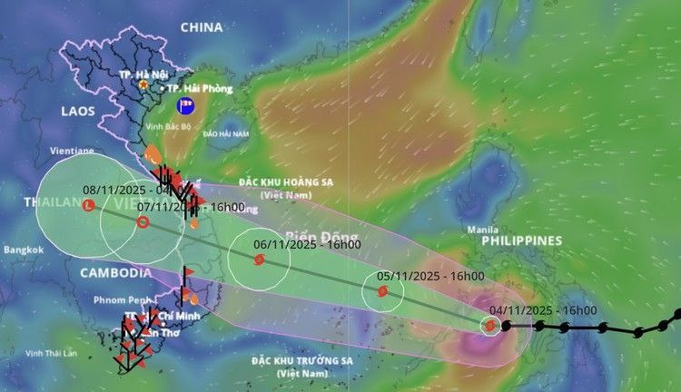 Траектория тайфуна Калмаеги, который сейчас движется в сторону Вьетнама, аналогична траектории тайфуна Дамри, который обрушился на Вьетнам в 2017 году.