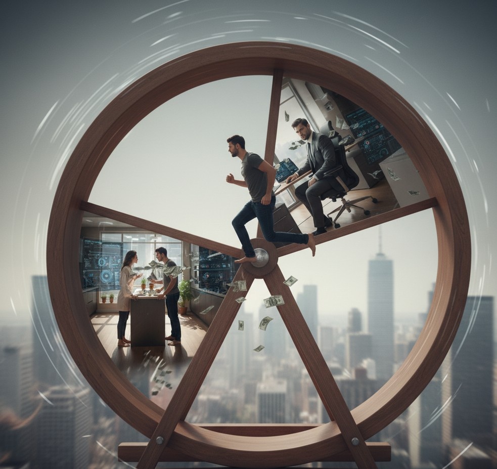 Утром все повторяется. Это замкнутый круг. Идеальная ловушка современного мира, где "успех" измеряется квадратными метрами в ипотеке и количеством кредитов, а цена за это — собственное время, нервы и мечты.
