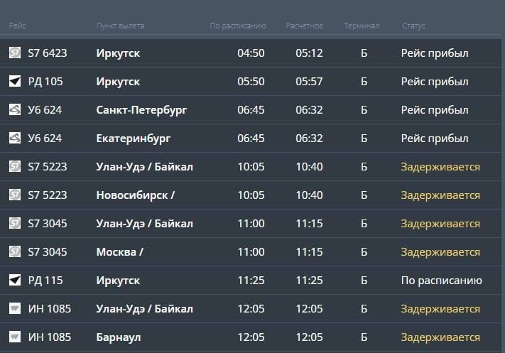 В ответ на пост Сразу шесть рейсов, которые должны были приземлиться в Чите, задерживаются. Скорее всего, это из-за тумана. Опаздывают самолеты из Улан-Удэ, Новосибирска, Москвы и Барнаула. Подписчики говорят, что один из самолетов пытался несколько раз зайти на посадку, но по итогу улетел садиться в Улан-Удэ. Скрин табло с сайта читинского аэропорта 📌📌📌📌📌 на «Чита.Ру» в МАХ