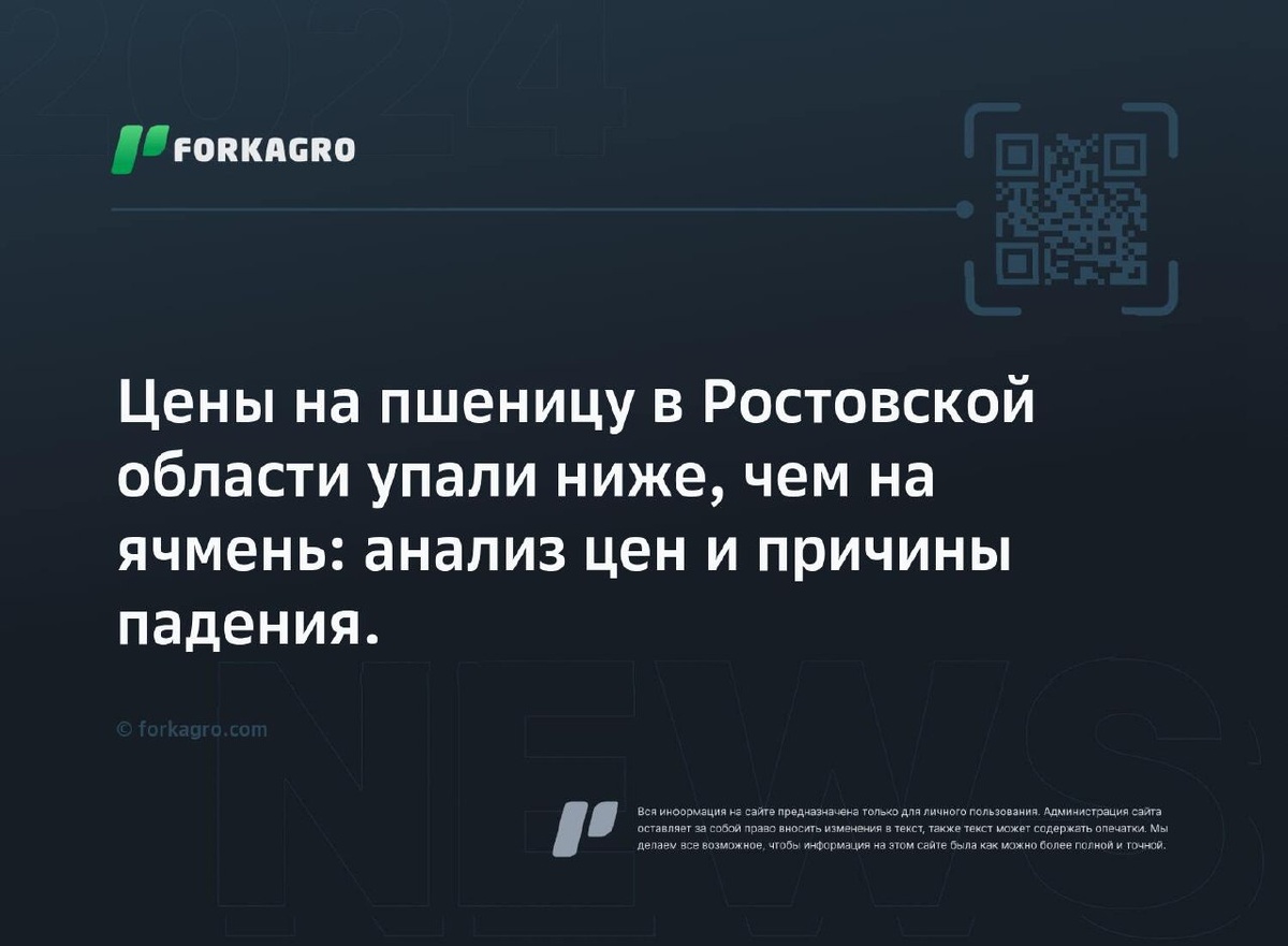 Цены на пшеницу в Ростовской области упали ниже, чем на ячмень: анализ цен и причины падения. В Ростовской области цены на пшеницу опустились ниже ячменя — 14,5 тыс. рублей за тонну. Это создает трудности для сельхозпроизводителей из-за невысокой коммерческой привлекательности. Средняя цена закупки пшеницы четвертого сорта составляет 14,2 тыс. рублей за тонну. Эксперты отмечают проблемы в зерновой отрасли из-за увеличения перегрузочных мощностей и снижения урожая. Перейти к источнику