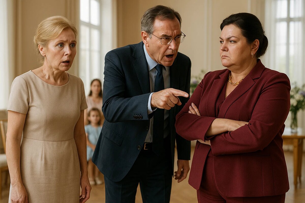 Лариса стояла у стены со сложенными руками — высокая, крупная, с жёстким лицом. Рядом Михаил уткнулся в телефон. Они не поздравили, не улыбнулись. Просто присутствовали, как понятые.