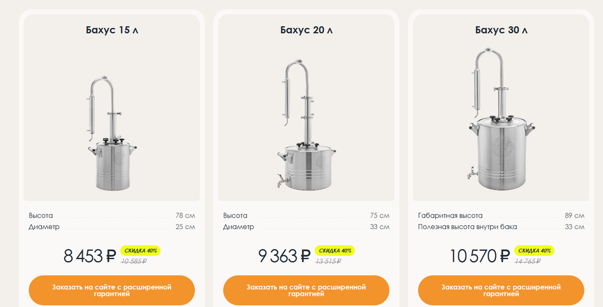 Первое мое приобретение - это аппарат Бахус на 30 литров.