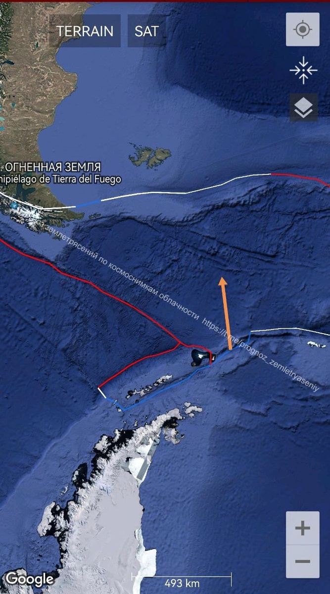 Тектоническое напряжение уровня М6 наблюдается на стыке плиты Scotia с плитой Shetland. Пингвины и полярники в зоне риска. ===== Tectonic stress of the M6 level is observed at the junction of the Scotia plate with the Shetland plate. Penguins and polar explorers are at risk.