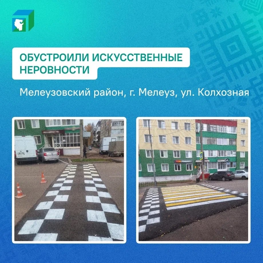😀😃😄😁 Искусственные неровности обустроили в г. Мелеузе по ул. Колхозной. Об этом просили местные жители – написали в соцсетях. Комментарий попал в ЦУР Башкортостана в начале октября. Просьбу жителей выполнили. В Уфе после обращения жителей микрорайона Сипайлово, родителей учеников школы № 130, на пешеходном переходе нанесли дорожную разметку. Теперь переходить дорогу в этом месте стало безопаснее. 💚 ЦУР Башкортостана