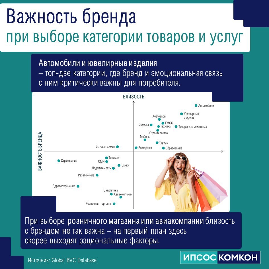 💬 Бренд в зоотоварах — это про доверие Исследование Ипсос Комкон показывает: товары для животных входят в число категорий, где бренд действительно важен для покупателя. На графике важности бренда зоотовары расположены рядом с автомобилями, "ювелиркой" и FMCG — то есть в зоне, где эмоциональная связь и рациональные факторы работают вместе. 🐾 Почему так? Выбирая корм, лакомство или шампунь для питомца, человек фактически делает выбор в пользу безопасности и заботы. Это не просто продукт, а доверие — к качеству, составу, бренду, который “не подведёт”. 💬 Анализ значимости Бренд играет роль маркера доверия. Владельцы животных склонны выбирать проверенные компании, особенно когда речь идёт о здоровье и питании питомцев. Эмоциональный фактор присутствует. Люди воспринимают питомцев как членов семьи, поэтому выбирают те бренды, которым «доверяют заботу» о своём любимце. Рациональные аргументы тоже сильны. Цена, состав, рекомендации ветеринарных специалистов и наличие в магазинах оста