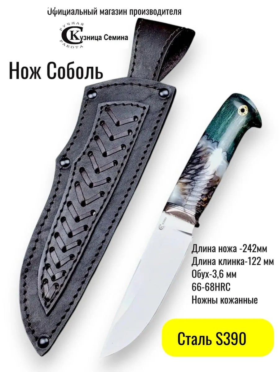 Нажми на ссылку и перейди на наш магазин на WB:https://www.wildberries.ru/catalog/225998561/detail.aspx?targetUrl=SN Мегамаркет:https://megamarket.ru/catalog/details/nozh-kuznica-semina-sobol-stal-s390-rukoyat-mokume-gane-kompozit-shishka-v-akrile-600023418718/ Для оформления заказа 📲8(930) 809-26-51 Елена.( Вайбер, Ватсап,Телеграмм) 📌Нож "Соболь" из стали S390 с рукоятью из притина макуме гане и акрилового композита (шишка в акриле + кап клена), ножны из телячьей кожи.📌 Материал: сталь S390. Рукоять: притин макуме гане, акриловый композит (шишка в акриле + кап клена). Общая длина: 242 мм, длина клинка: 122 мм, ширина клинка: 30 мм, толщина клинка: 3,6 мм, длина рукояти: 120 мм, толщина рукояти: 24 мм, твердость клинка: 67-69 HRC.