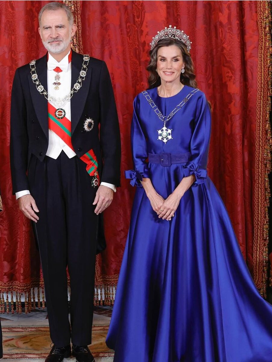 Вчера вечером в королевском дворце Мадрида состоялся государственный ужин в честь визита в страну султана Омана. Для мероприятия королева Летиция предпочла ярко-синее атласное платье в пол и много королевских украшений, в том числе - внушительную жемчужную тиару от Cartier, которую также называют «русской» из-за формы, напоминающей кокошник. Как вам образ королевы?