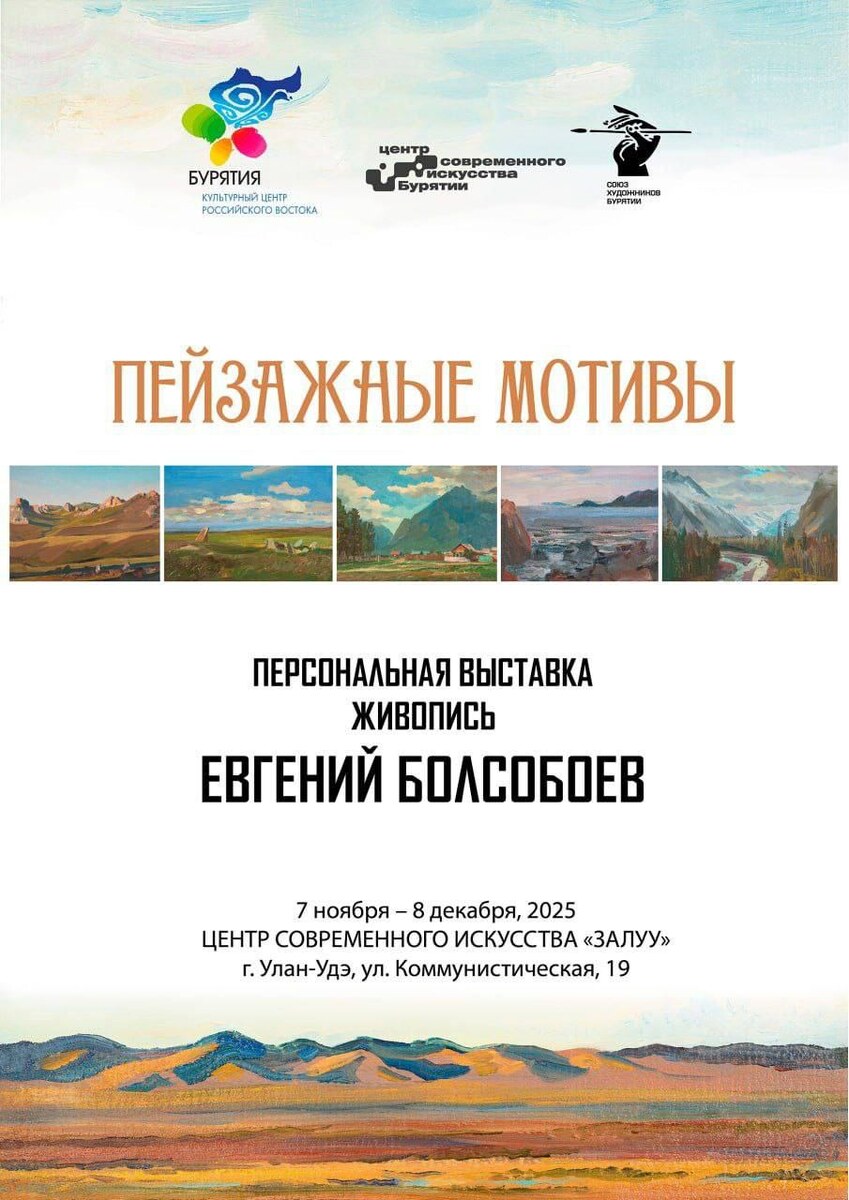 Персональная выставка Заслуженного художника Бурятии Евгения Болсобоева открывается в ЦСИ "Залуу" ⠀ Выставка «Пейзажные мотивы» начнет работу 7 ноября ⠀ Пейзаж — жанр, который десятилетиями вдохновляет художников Бурятии. Колоритная природа, её изменчивая красота, состояние воздуха — всё это становится частью творческого поиска, который особенно ярко раскрывается в пленэрной практике Художник использует знакомые мотивы, но наполняет их искренним диалогом между человеком и природой. Его работы притягивают простотой, лиричностью и глубоким чувством восхищения миром ⠀ Евгений Болсобоев — заслуженный художник Бурятии, выпускник Дальневосточной академии искусств, председатель Союза художников Бурятии. Его работы хранятся в музеях Улан-Удэ, Иркутска, Омска, а также в частных коллекциях России, Монголии, Китая, Японии и Европы. ⠀ 📍 ЦСИ «Залуу», ул. Коммунистическая, 19 📅 7 ноября — 8 декабря