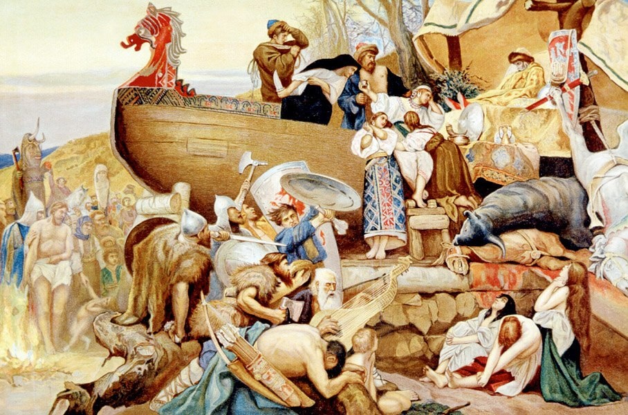 Ход погребальной церемонии у викингов (по данным археологии, саг и свидетельству арабского путешественника Ибн-Фадлана):
