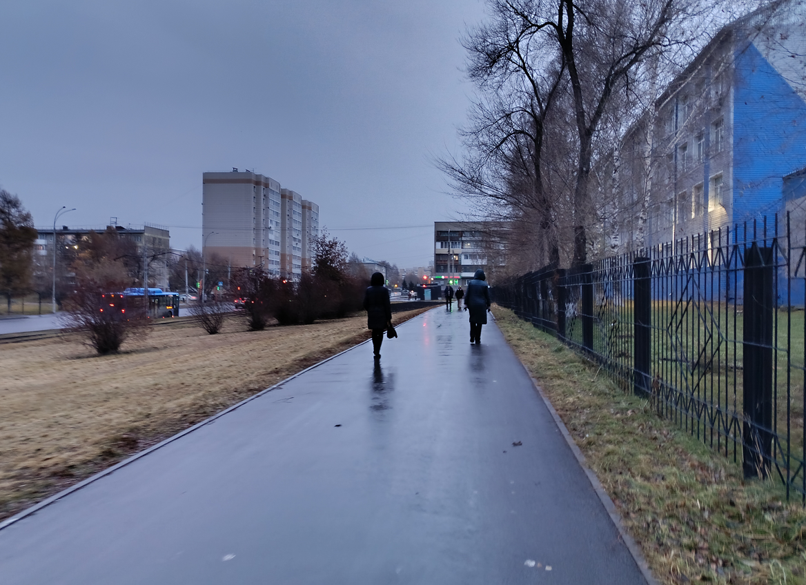 Чем можно было заняться вечером в День Народного Единства? Кстати, вы отмечали это прекрасный праздник, с историей которого я совсем не знакома? Уже после 16.00 Додо присылает сообщение, с просьбой сделать проверку в одной из её пиццерий. У них так принято, чаще всего они присылают приглашение именно в тот момент, когда нужно уже выходить из дома. И в этом минус данных проверок. На часах 16:15, проверку нужно сделать сегодня с 16:00 до 20:00, если хочешь соглашайся, не хочешь, можешь и не ходить, думаю, что они могут другого инспектора попросить и тот мало вероятно, что откажется. Согласилась я, предварительно подумав минут пять. В 17:07 вышла из дома и отправилась в назначенную пиццерию. Идти ровно 30 минут пешком, можно доехать на трамвае, но я решила прогуляться. Погода пасмурная, влажная, с неба то и дело капают мелкие, едва заметные капли дождя. Когда шла обратно была какая-то ещё испарина от земли, похожая на лёгкий туман, вызванный скорее всего повышенной влажностью. Прогуля