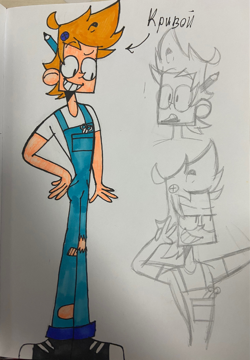 Имя : Кривой Возраст : 25.5 лет Пол : Мужской Рост ; 178 см. Способность : Умеет принимать любую форму. Превращаться во что угодно, и в кого угодно. (От оригинала отличить невозможно). спутники : Есть чудики. Они живут у Кривого в кармане на груди. в волосах есть канцелярские предметы. Характер : Общительный, отзывчивый, порой раздражительный, или брезгливый. Кривой постоянно конфликтует с Бодо. Он просто Плюет на этого Рыжего выскочку. Тот имеет характер ставить Бородатого на место , и четко видит все его грехи. Кривой часто в приключениях , фоткается на телефон 📱. Кривой однажды чуть не обстриг Бородатого на лысо. (и Угрожает что сделает это). Бодо еще и умудряется следить за ним. Кривой ненавидит что Бодо передвигает внимание на себя.