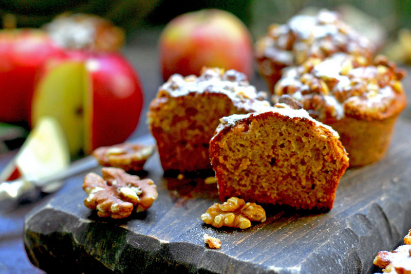 Эти маффины с яблоком и корицей обладают «уютными» вкусовыми качествами, но при этом содержат мало углеводов. Они мягкие и пышные, с насыщенным ароматом корицы. На 6 формочек: ✔ 85 г миндальной муки; ✔ 25 г порошкового сухого молока (или протеина спортивного без вкуса); ✔ Подсластитель – эквивалент 40 г сахара (у меня 45 г аллюлозы); ✔ 1.5 ч. л. разрыхлителя; ✔ 1 ч. л. корицы или специй для яблочного пирога; ✔ 1/4 ч. л. соли; ✔ 120 г яблока; ✔ 1 яйцо (С0); ✔ 60 г сливочного масла, растопленного; ✔Ваниль – 1-1,5 г; ✔ 50 мл жирных сливок; ✔ 50 г грецких орехов. Натрите ароматное яблоко, откиньте на ситечко, слейте сок. Орехи подробите очень крупно. В миске среднего размера перемешайте венчиком миндальную муку, сухое молоко, подсластитель, корицу, разрыхлитель и соль. Смешайте тёртое яблоко, яйцо, сливочное масло, ваниль и сливки до получения однородной массы. Равномерно распределите смесь по 6 силиконовым формочкам для маффинов. Посыпьте верх дроблеными орехами, слегка вдавив их в тесто.