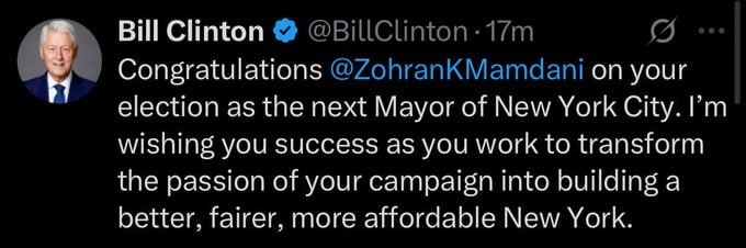 Clinton tells Mamdani to 'TRANSFORM' NYC
