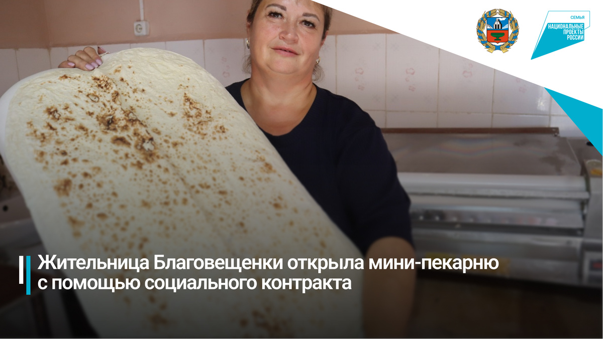 В мае 2025 года Наталья Недрова из Благовещенки заключила социальный контракт. Женщина получила финансовую поддержку в размере 350 тысяч рублей для открытия мини-пекарни по производству лаваша.