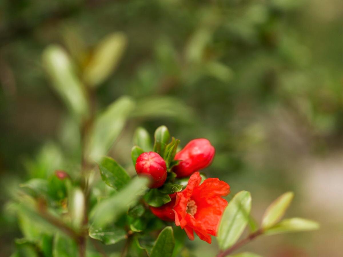 Цветы граната появляются в начале лета и могут радовать до осени. Они бывают двух типов: одни дают плоды, другие остаются декоративными. Отличить их можно по форме — плодоносящие цветки имеют утолщённое основание чашечки.