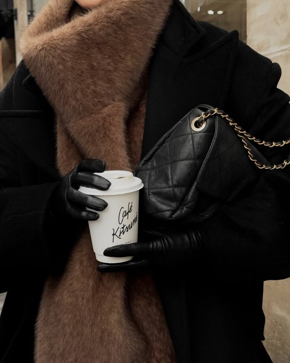 В этом сезоне — шерсть, мех: объёмные шарфы и уютные манишки.