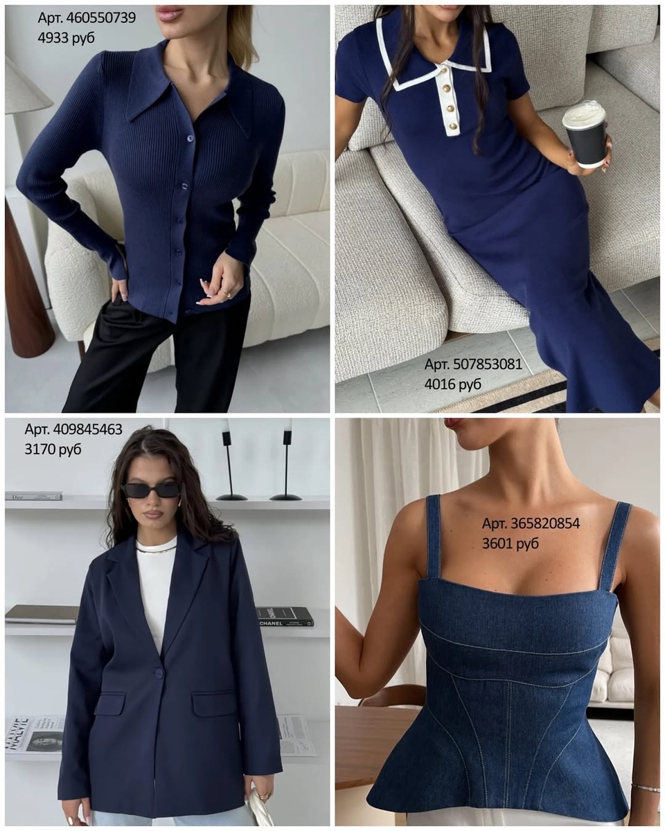 В этой подборке я собрала вещи в разных оттенках синего — от трикотажных кардиганов до стёганого пальто. Все модели с фото идут строго по порядку артикулов, чтобы было удобно искать их на вайлдберриз.