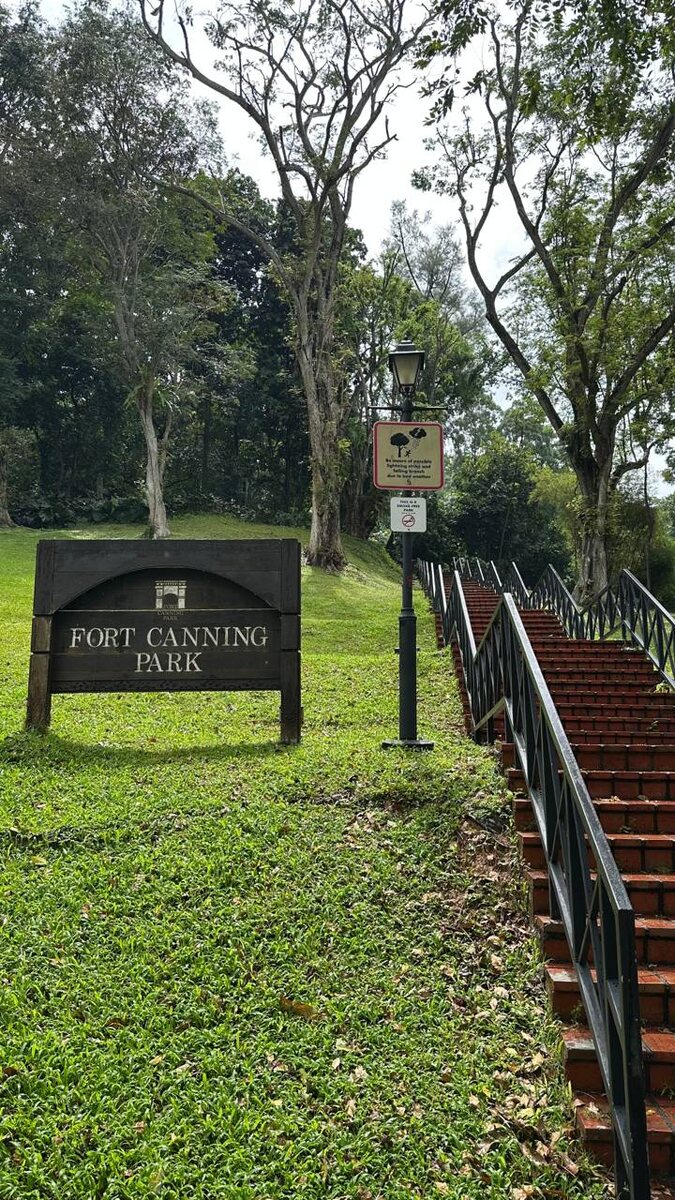 Первым делом в этот день я отправилась в Fort Canning Park — одно из самых известных зелёных мест Сингапура. Раньше здесь находился настоящий форт, с которого открывался стратегический вид на город и гавань. А ещё задолго до этого холм считался священным местом для местных жителей — говорят, именно здесь жили древние правители Сингапура 🪑 Главная «точка притяжения» здесь — Fort Canning Tree Tunnel. Это лестница, уходящая вниз в туннель, откуда открывается вид на круглое отверстие с ветвями дерева и небом. На фото — просто магия ✨ Я, конечно, тоже хотела сделать тот самый кадр, но, когда пришла, увидела огромную очередь, которая не двигалась даже через 10 минут. В итоге я просто сфотографировала девушку, которая как раз позировала, и пошла дальше гулять 📷 А ещё меня очень удивило, что помимо обычных лестниц в парке есть… эскалаторы! Вот это по-сингапурски: даже в парке всё продумано до мелочей и максимально удобно. Иногда не нужно идеального фото, чтобы день запомнился — достаточно пр