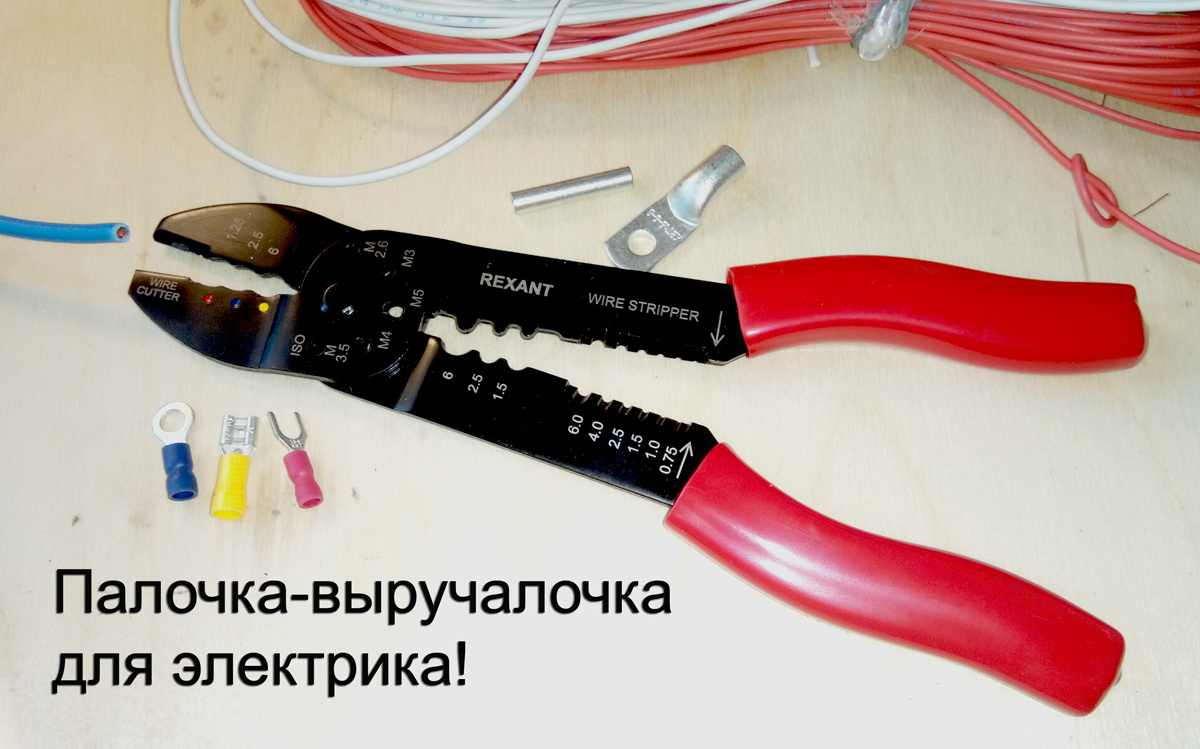 Я хотел бы рассказать об одном из своих инструментов - удобных, компактных и недорогих клещах, которые могут выполнять функции аж 5 разных инструментов - вам это пригодится! Первая и очень полезная функция это кабельные ножницы. В отличие от обычных ножниц, которые могут закусывать изоляцию электрической жилы, отчего место отрезка становится неряшливым, особенно у мягких жил, кабельные ножницы отрезают жилу ровно и гладко. Это особенно важно, если вам после обрезки нужно опрессовать этот кончик или зажать его в клемме. Эти ножницы одинаково хорошо работают как с мягкими, так и с жёсткими жилами, сечением до 6 мм2. Кроме штырьковых наконечников, мягкие медные провода можно и нужно опрессовывать фигурными или изолированными наконечниками. Они могут иметь разную форму фасонной части - вилка, кольцо, плоская клемма и служат для создания разъёмного соединения, которое в будущем можно разобрать, например для разъединения сложного электронного аппарата на отдельные модули, для удобства ремон