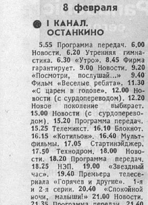 В 1993 году на нашем телевидении начался показ одного из первых российских сериалов под названием "Горячев и другие". Премьерный показ состоялся 8 февраля. В тот год были показаны серии с 1 по 21, а в 1994 году показали серии с 22 по 35.