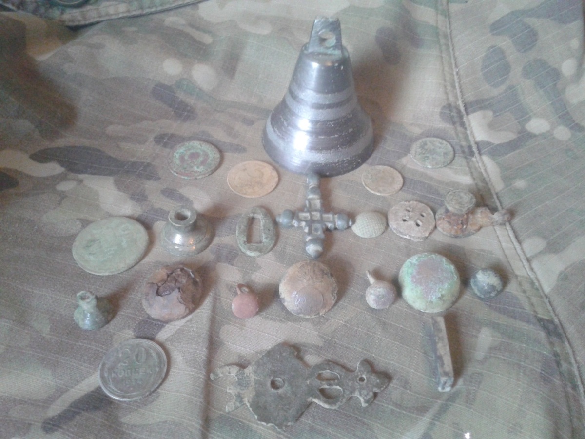 Приветствую Всех,Отправился я тут в выходные на покопушки на всё тоже картошечное поле а его как назло вспахали а так как я бегемот особо увесистый я не могу ходить по такой рыхлой земле я в ней тону как немецкий танк в русском болоте,Пришлось косолапить на кукурузное поле а там вообще караул,его продисковали и обильно оросили небесными массами и так как лыжи я небрал а без них там можно было пойти ко дну как Титаник с Му-му на борту,Мне пришлось идти на соседние поле где можно ходить но нельзя ничего найти,я там был несколько лет назад там алюминиевой проволоки столько что рядом можно открыть маленький литейный алюминиевый заводик,Минут двадцать там шатался добывая алюминьку а потом Ася радостно хрюкнула и запела как синяя баба из пятого элемента,копнул ямку и сунул в неё свою загребущею хваталку,потрогал там всё что только можно и нащупав нечто то странное решил вытянуть и поглядеть,Вытянув из земельки серенькой целый поддужный колокольчик у меня от радости чуть мои ножки топтыжки в