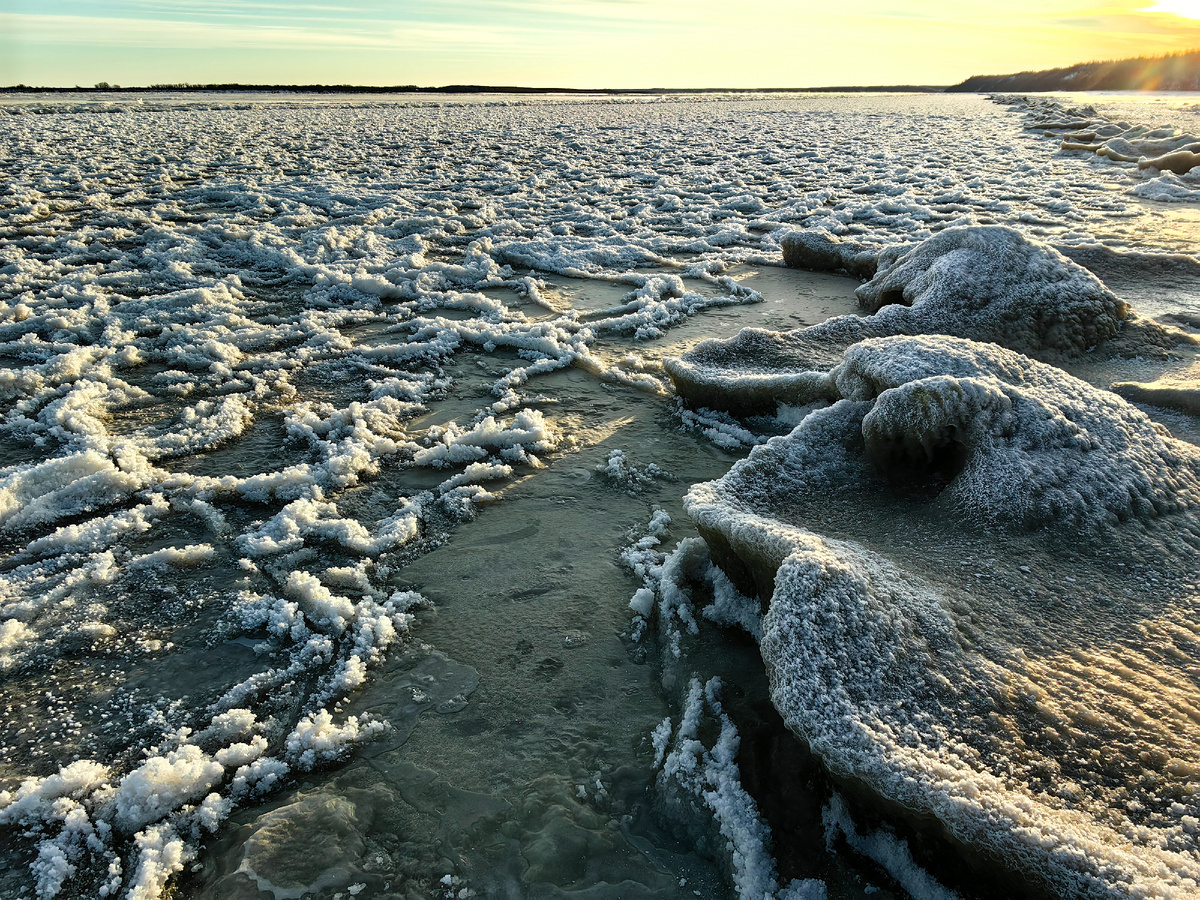 Представьте: вы просыпаетесь утром, а привычная красавица-Обь у вашего берега изменилась до неузнаваемости. Именно такое чудо случилось на Ямале, возле маленького северного поселка Аксарка. Река, замерзая слоями, подарила жителям настоящее зрелище, больше похожее на иллюстрацию из фантастической книги. Сначала у берега возникли огромные ледяные наплывы, напоминающие застывшие волны. Затем – самое загадочное - появились "гнезда" из льда. Эти причудливые образования выросли буквально за одну ночь, поражая своей масштабностью и формой. Дальше – больше. Льдины шириной до пяти сантиметров, вздыбились и образовали картину, достойную древних легенд: они выглядят как зубы доисторического дракона, охраняющего свои владения. За всеми этими слоями простирается уже более привычный лед, лишь кое-где припорошенный снегом. А у противоположного берега – тонкая лента незастывшей воды, словно последний штрих, напоминающий о живом течении реки. Но на этом волшебство не заканчивается! Чуть ниже по течению