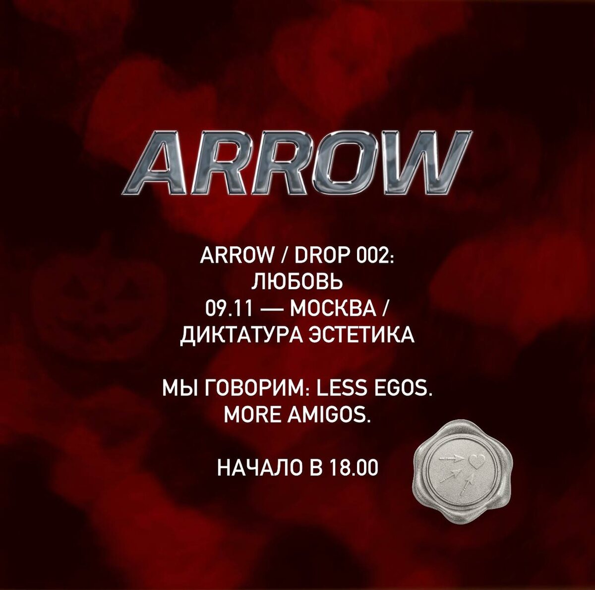 ARROW / DROP 002: ЛЮБОВЬ 09.11 — Москва / Диктатура Эстетика Вторая глава нашего пути. После презентации в особняке Хлудова мы сделали более ламповый формат. Программа: 🏹 показ коллекции «Любовь» 🏹 тёплое общение без лишнего шума 🏹 примерка и возможность забрать вещи сразу 🏹 нетворкинг с теми, кто реально двигает культуру 🏹 первые 50 гостей получат приглашение на чайную церемонию от Алексея Алфёрова 🏹 розыгрыш вещей ARROW Мы говорим: Less Egos. More Amigos. 100 мест. 🎟 Регистрация — arrowdao.ru/drop002aesthetics 📍Адрес: Москва, Берсеневская набережная, 6, стр. 2, Диктатура Эстетика 📎 познакомься с нами: Telegram — @arrowdao Инстаграмм — @arrowdao