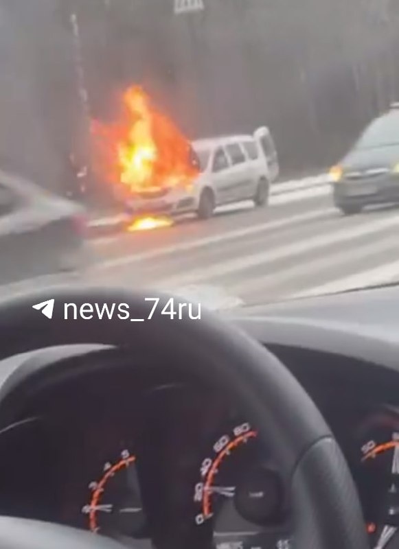Судя по видео от читателей @74.ru, вспыхнула Lada Largus. На месте образовалась пробка.