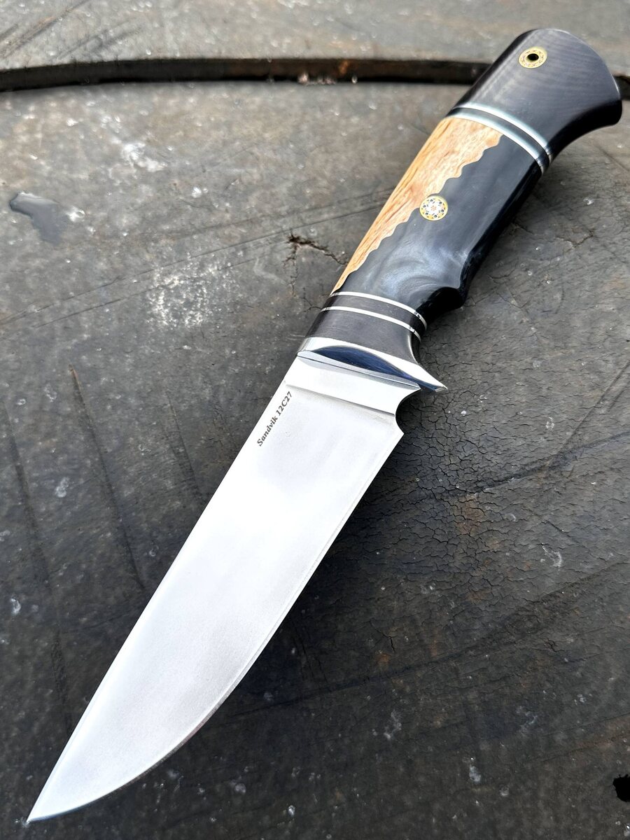 🔪 Клинок из шведской нержавеющей стали Sandvik 12C27 — прочный, острый, не требует частой заточки.