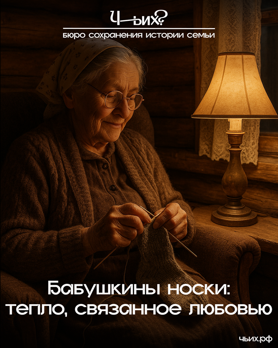Есть вещи, которые невозможно купить. Можно найти похожие в магазине, но это будет не то. Бабушкины вязаные носки — из таких вещей. Помните это ощущение? Натягиваешь толстый шерстяной носок, и нога сразу окутывается теплом. Мягко, чуть колюче, пахнет шерстью и домом. Носок неровный, где-то петелька выбилась, пятка уже заштопана, но он свой. В нём столько тепла, что хватило бы обогреть весь дом. В деревнях и сёлах вязание носков было не хобби — это была необходимость. Зима длинная, холодная, валенки есть не у всех, а тканевые носки промокают и не греют. Шерстяные носки носили все: дети, взрослые, старики. Меняли по мере износа — а изнашивались они быстро. Вязали женщины - бабушки, мамы, тётки, старшие сёстры. Начинали рано — девочек учили с 7-8 лет. Спицы в руки, простой узор, и пошло. Первые носки получались кривые, с дырками, петли неровные. Но к подростковому возрасту девушка уже могла связать носки на всю семью. Вязали вечерами. Вспомните, как ваша бабушка сидит у лампы или при свеч