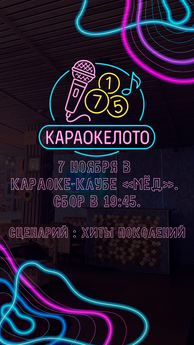 ✨ Караоке Лото в караоке "Мёд" 🎤 Пятница уже близко — и она будет горячей! 🔥 Уже 7 ноября собираемся в караоке-клубе «Мёд», чтобы петь любимые хиты, громко, от души и вместе! Настраивайтесь на волну музыки, веселья и драйва — мы готовим настоящий жаркий вечер КараокеЛото 🎶 ✨ Что вас ждёт: Хиты, которые невозможно не подпевать Атмосфера, в которую влюбляются с первого куплета Улыбки, друзья и новые знакомства И, конечно — мы, которые будем ждать именно тебя! 📍 Караоке-клуб «Мёд» 🗓 Пятница 7 ноября ⏰ Начало в 20:00😏 Бронируй место, приходи с друзьями — проживём этот вечер громко и красиво! 💛 📆 07.11.2025 🕛 20:00 💰 Цена: 1000 ₽ 🔗 Записаться: https://vk.me/karaokeloto_chv
