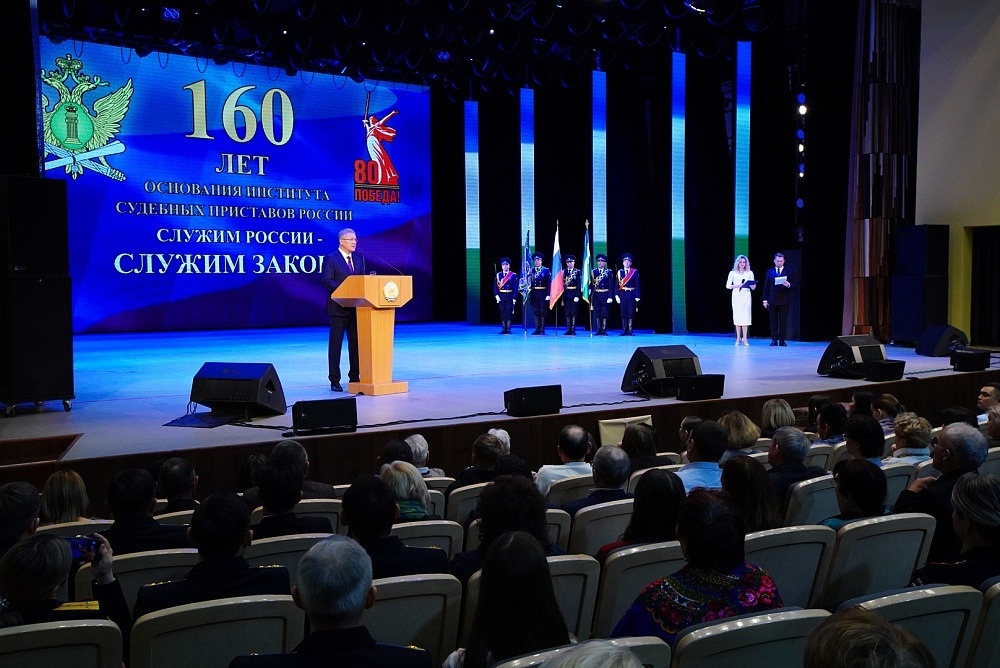 5 ноября в Государственном концертном зале «Башкортостан» Глава республики Радий Хабиров принял участие в торжественном собрании, посвящённом 160-летию со дня образования института судебных приставов в России. Мероприятие открыло видеопоздравление президента страны Владимира Путина. – Поздравляю вас с профессиональным праздником – Днём судебного пристава. Хочу поблагодарить за эффективную, ответственную работу в интересах Российского государства, общества и всех граждан нашей страны, – отметил глава государства. – Широкие полномочия и гарантии, предоставленные судебным приставам, накопленный опыт позволяют добиваться строгого, безусловного исполнения судебных актов, проводить дознание и участвовать в розыске лиц, преступивших закон, вносить весомый вклад в пополнение бюджетов всех уровней, отстаивать права, в том числе детей и других категорий граждан, нуждающихся в особой защите и поддержке. Глава Башкортостана в своём выступлении подчеркнул, что судебные приставы являются неотъемлемо