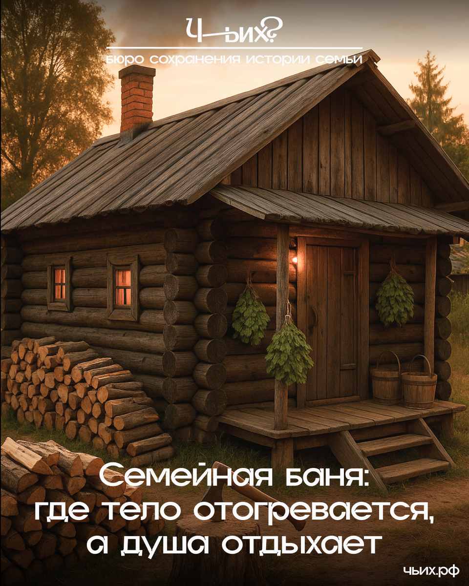 В деревне суббота пахнет по-особенному. К вечеру из всех дворов тянется дымок — белый, густой, с запахом берёзовых дров. Это топят бани. Семейный ритуал, который повторяется из недели в неделю, из поколения в поколение. Баня в русской деревне — это не просто помыться. Это место, где семья собирается вместе, где смывается усталость недели, где дети учатся заботиться о себе и друг о друге. Подготовка начиналась с обеда. Дед колол дрова — берёзовые, они дают хороший жар и приятный дух. Отец носил воду из колодца — вёдрами, несколько заходов. Мать готовила веники — берёзовые или дубовые, запаренные в кипятке, они наполняли баню лесным ароматом. Дети помогали, кто как мог. Старшие таскали дрова к печке, младшие раскладывали полотенца, приносили мыло, расставляли шайки. Каждый знал своё дело. Баню начинали топить за три-четыре часа. Печь-каменка долго набирает жар, камни должны раскалиться докрасна. Отец периодически проверял: если плеснуть воды на камни, пар должен быть сухим, обжигающим,