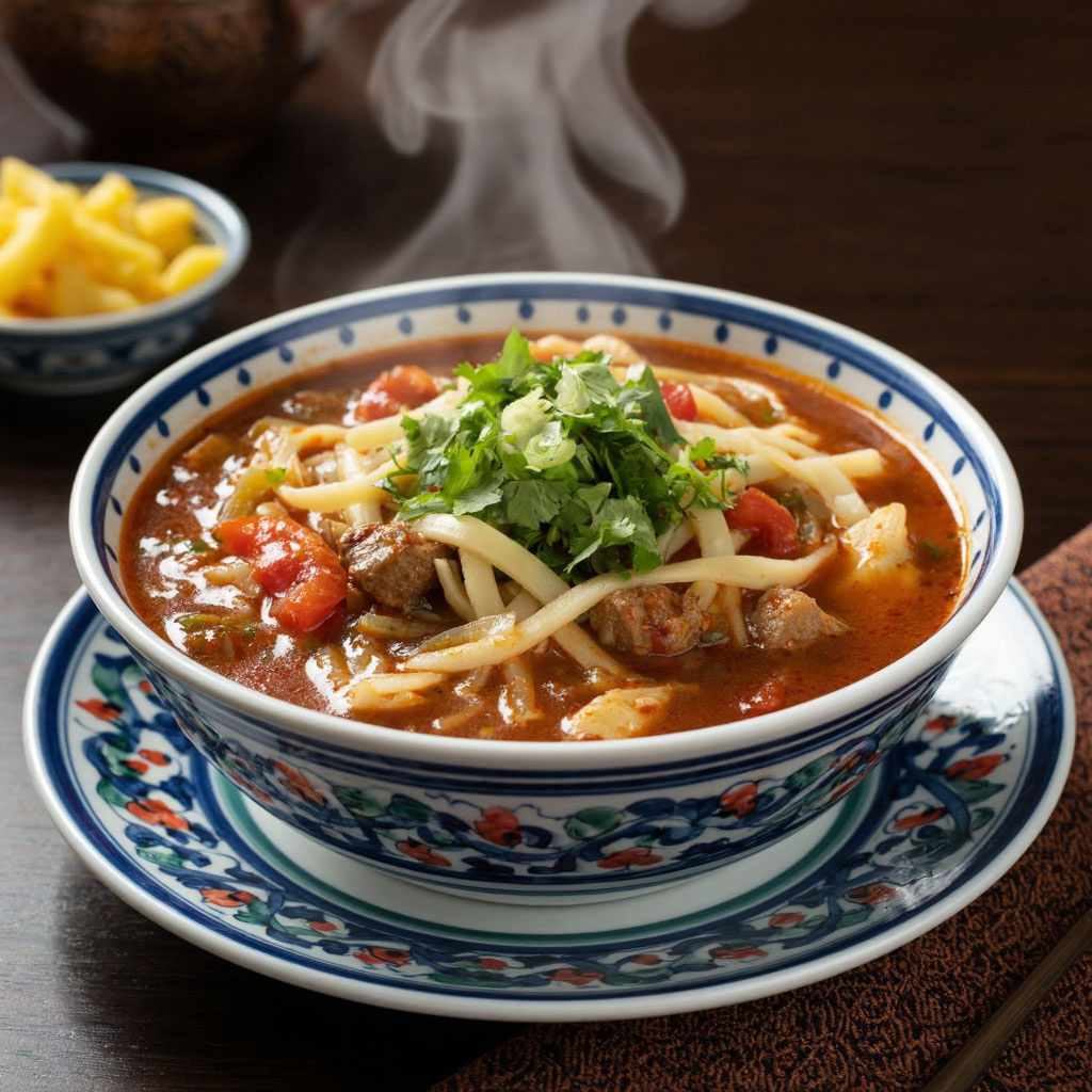 Время приготовления: 2-2.5 часа (большая часть — томление) · Сложность: средняя (из-за лапши), но есть лайфхак для ленивых! · Кухня: Среднеазиатская Ингредиенты Разделим наш кулинарный проект на две части: соус (ваджу) и лапша. Для Лагмана (Ваджу — соус с мясом и овощами): · Мясо (баранина или говядина) — 500-600 г (лучше с жирком, например, лопатка или грудинка) · Лук репчатый — 2-3 крупные головки · Морковь — 2 шт. (крупная) · Перец болгарский — 2 шт. (разных цветов для красоты) · Помидоры — 3-4 шт. (сочные, спелые) или 2-3 ст.л. томатной пасты · Картофель — 2-3 шт. (средние) · Чеснок — 5-7 зубчиков · Зелень: пучок кинзы, пучок укропа, черешки сельдерея (по желанию, но очень аутентично!) · Специи — душа блюда: · Зира (кумин) — 1.5 ч.л. · Молотый кориандр — 1 ч.л. · Паприка сладкая — 1 ч.л. · Перец чили молотый или свежий — по вкусу · Свежемолотый черный перец · Соль — по вкусу · Растительное масло для жарки Для Домашней Лапши: · Мука — 500 г (плюс еще для подпыла) · Вод