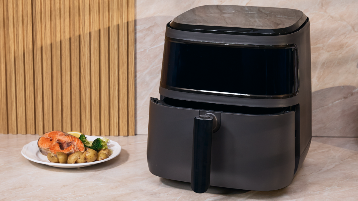- Создаёт идеальную корочку. Воздух циркулирует со всех сторон, поэтому продукты равномерно прожариваются и выглядят аппетитно, как из духовки. Курица получается с золотистой корочкой, овощи — с лёгким хрустом.