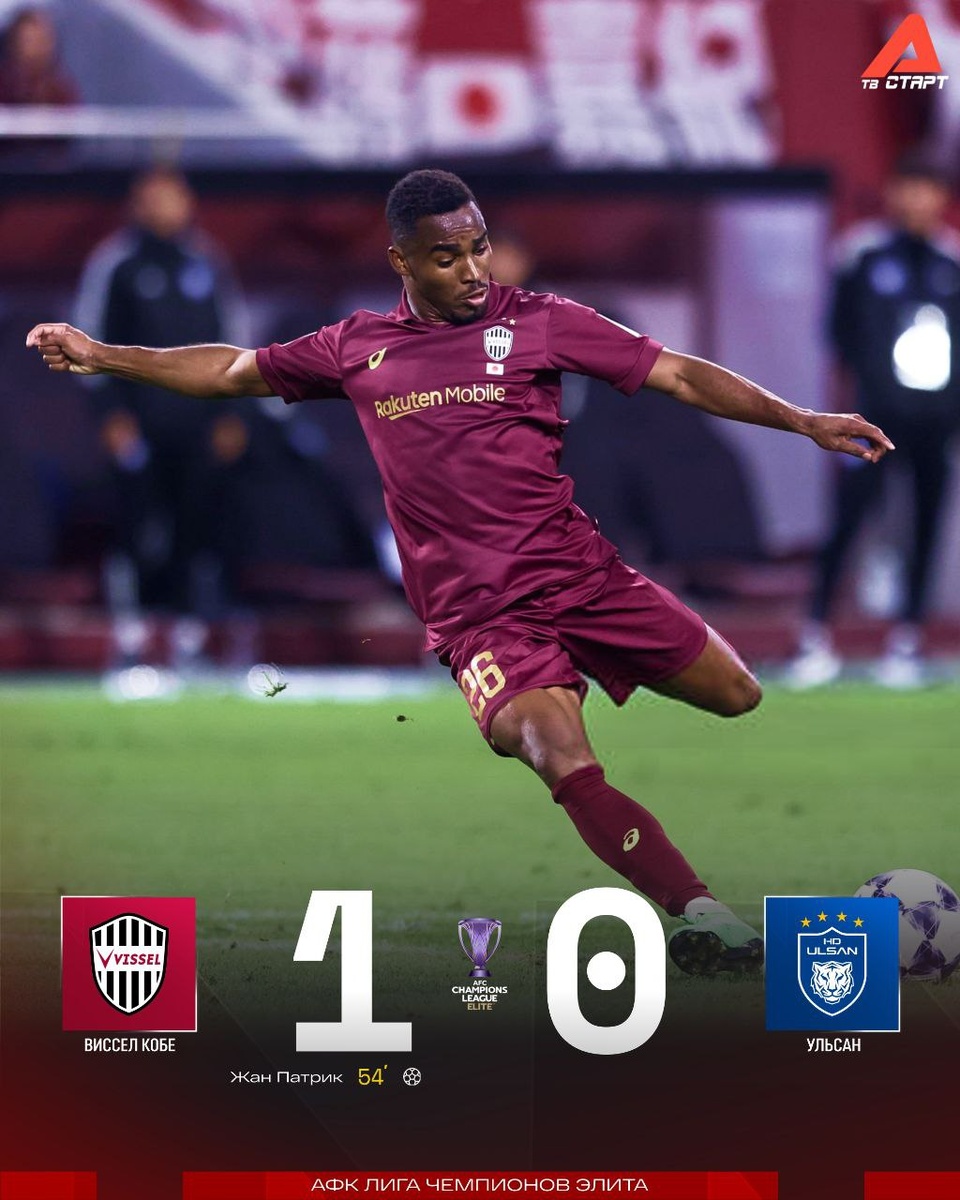 🔥⬆️ «Виссел Кобе» – лидер Восточной конференции АФК Лига Чемпионов Элита по итогам четырёх туров Действующие чемпионы Японии сегодня обыграли «Ульсан». Единственный мяч забил Жан Патрик. Далее смотрим матч «Шанхая Шеньхуа» Леонида Слуцкого против «Джохора» на телеканале «Старт» и платформе TVSTART.RU 🖥 🛒 Наше приложение в Google Play 💙 Наше приложение в RuStore 🛒 Наше приложение в App Store