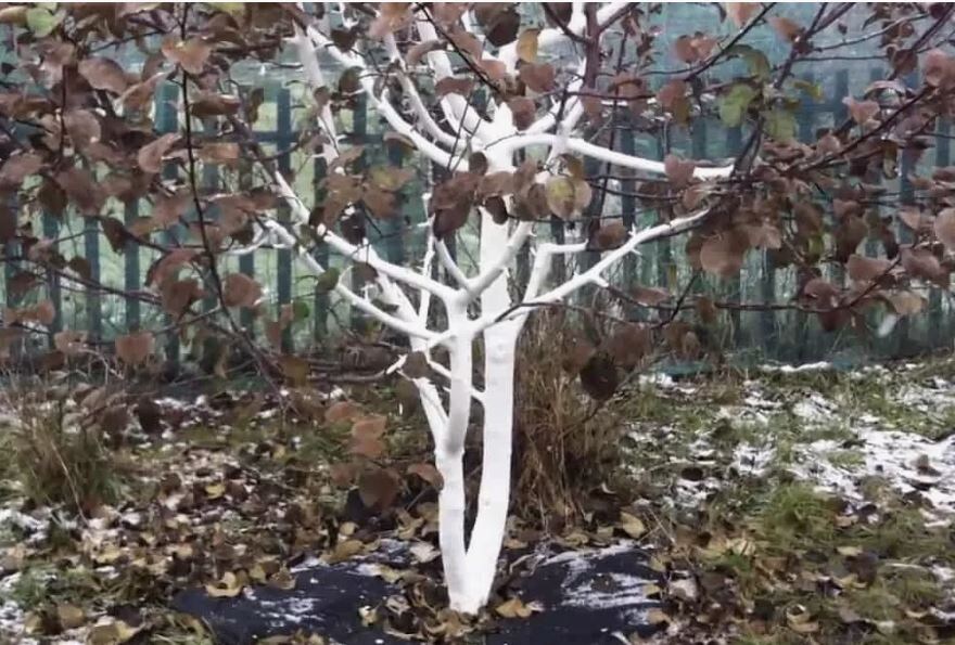 Это защита коры от морозобоин, солнечных ожогов, грызунов, лишайников и спор грибков.