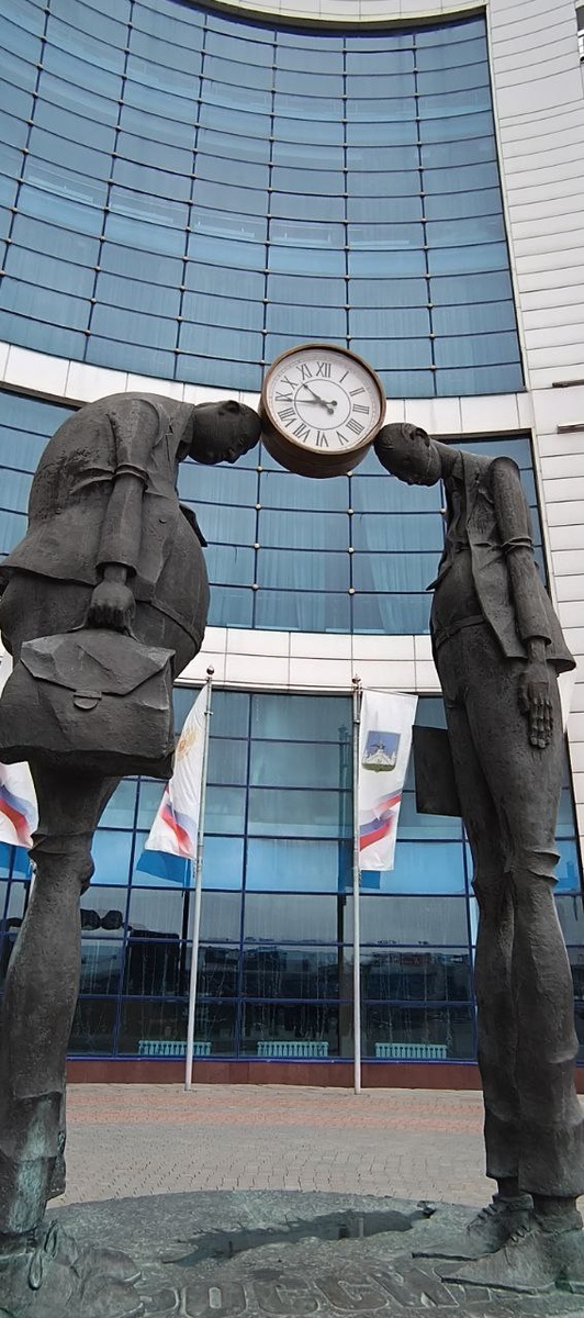 Переговорный памятник Закончились праздники, я вернулся из поездки, прокатив 1200 километров за рулём - пора и за работу 😊 В Орле мы наткнулись на вот такой памятник: чиновник и бизнесмен вместе стоят над территорией России. В пояснении сказано, что идея композиции - в объединении этих двух видов деятельности. Бизнес и власть должны помогать друг другу, чтобы страна развивалась. Занятная форма подачи идеи взаимодействия 😁