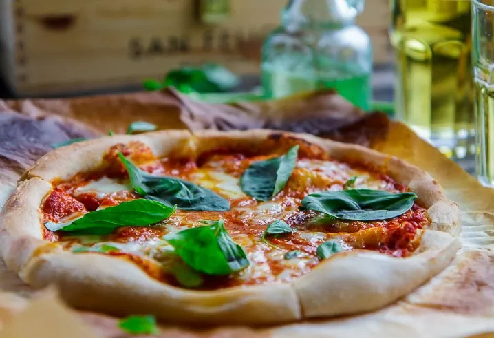 - несколько веточек базилика 🔥 Приготовление: 1. Сформируйте на столе горку из муки с углублением в центре, влейте часть воды, добавьте сухие дрожжи (сверьтесь с инструкцией на упаковке для точного количества) и перемешайте до консистенции густой сметаны.