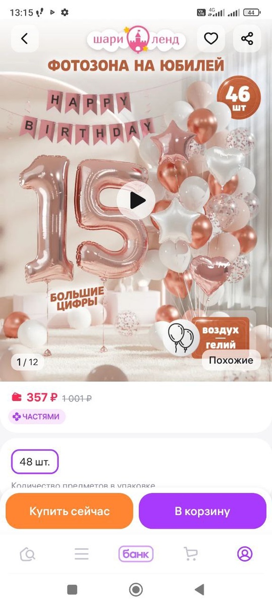 Ну что я хочу сказать? Я погорячилась, когда решила удалить 🛒🛒. Просто я вообще не подумала, что 20 ноября у дочки ДР и как раз уже пора заказать фотозону и декор для торта. Маркетплейсы возвращаю, но лимит трат не более 5 тысяч рублей. На 🛒 заказала упаковку сока, шары для фотозоны, пряники для торта и липучки для шаров.